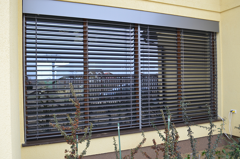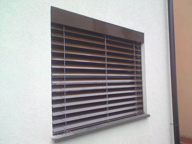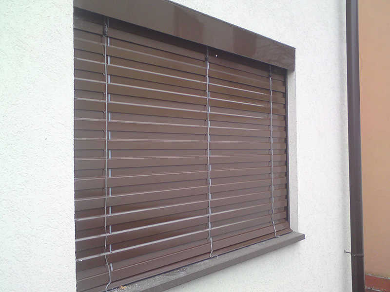 Acest tip de jaluzele sunt cele mai utilizate, dar si cele mai rezistente la actiunea vantului. Forma si dimensiunile lor le permit sa reziste la vant cu viteze de pana la 80km/h. Variantele cu montaj sub tencuiala sau cu tabla de acoperire, la care actionarea este cu manivela sunt variantele propuse in pachetul standard. Pe langa acestea se pot face diferite imbunatatiri, in functie de dorintele si nevoile clientilor.